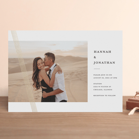 This minimalist design submission was chosen by Minted, an online artists’ marketplace. The invitation lives as a part of the Minted+BRIDES® Modern Classic Collection, an exclusive partnership with Brides.com.